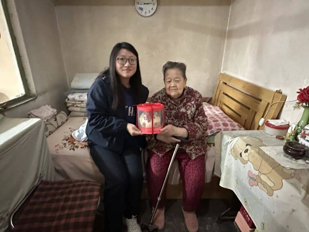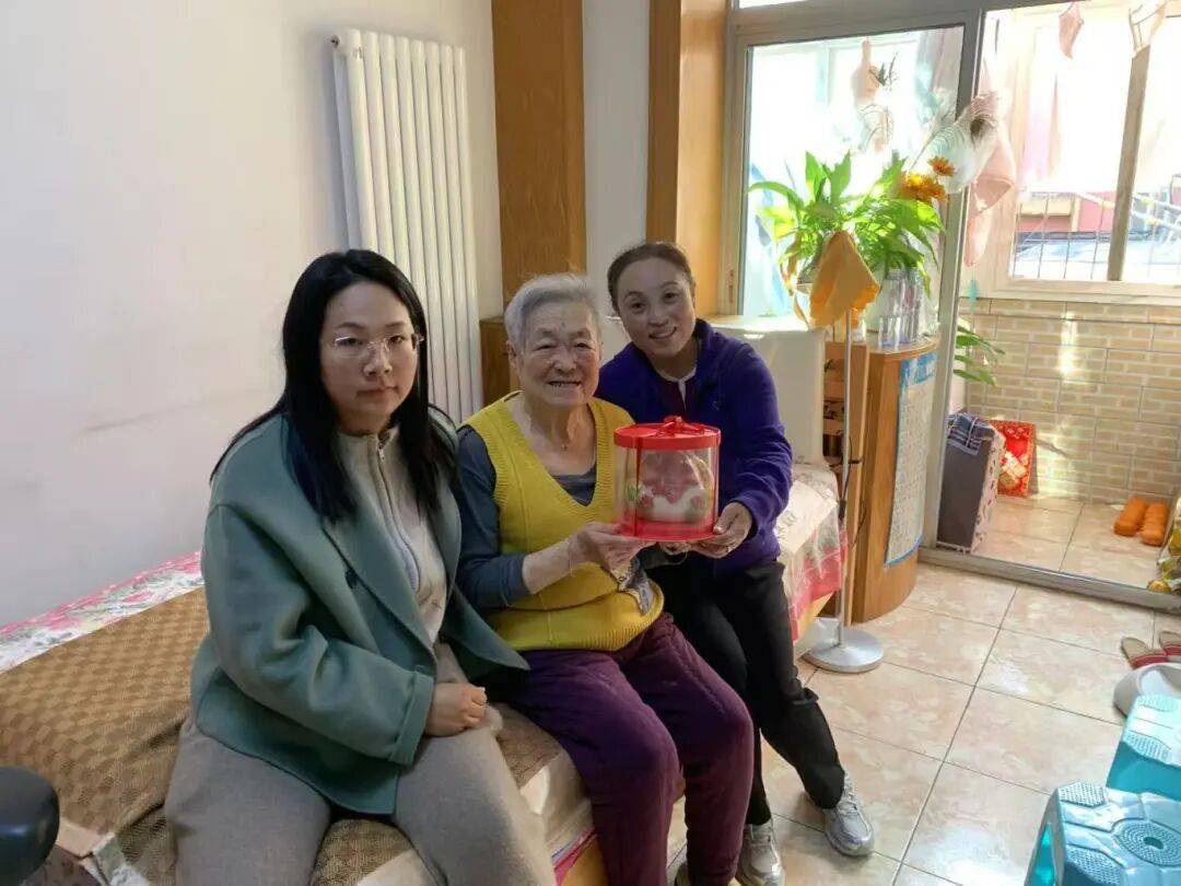 除了现场活动,社区党委书记赵溪还带领工作人员,带着精心准备的寿桃礼盒,专程入户看望辖区90岁以上的高龄老人。“张奶奶,我们来看您啦,祝您重阳节快乐!” 一进门,赵溪书记就握着老人的手唠起家常,仔细询问老人的饮食睡眠和身体状况,反复叮嘱“天气转凉,一定要及时添衣服,千万别着凉”;听到老人说起年轻时的故事,她耐心倾听,时不时点头回应;得知老人生活上有小需求,立刻安排工作人员记下,承诺尽快帮忙解决。