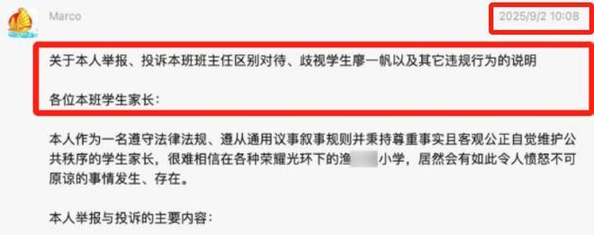 在第2天,廖一帆爸爸直接在群里公布了一件事情,他先是道歉,后指出问题,认为发布通知不合理,应该是倡议,其次直接把班级的班主任举报投诉了。