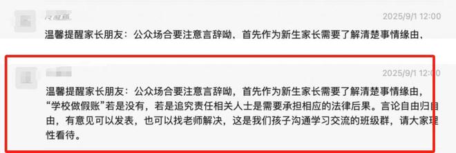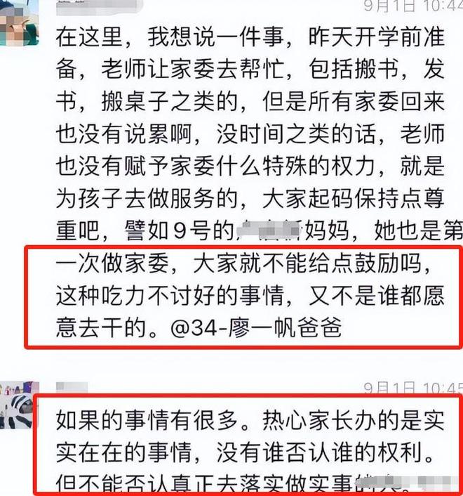 这不,家委会的成员纷纷出来发言了,还提醒家长朋友们,公共场合要注意言辞,另外也提醒廖一帆爸爸不要张口就来,说话需要负责的。