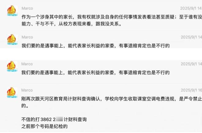 于是,这件事情又扯到学校违规收取空调费的事情上了,并且廖一帆爸爸直接打电话询问过,并没有收取空调费用的说法。