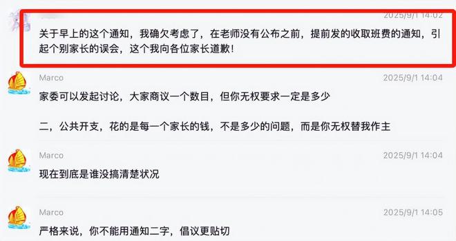 家委负责人也在群里进行了道歉,表示是自己操作不当,不应该提前发布信息,从而引起不必要的误会。